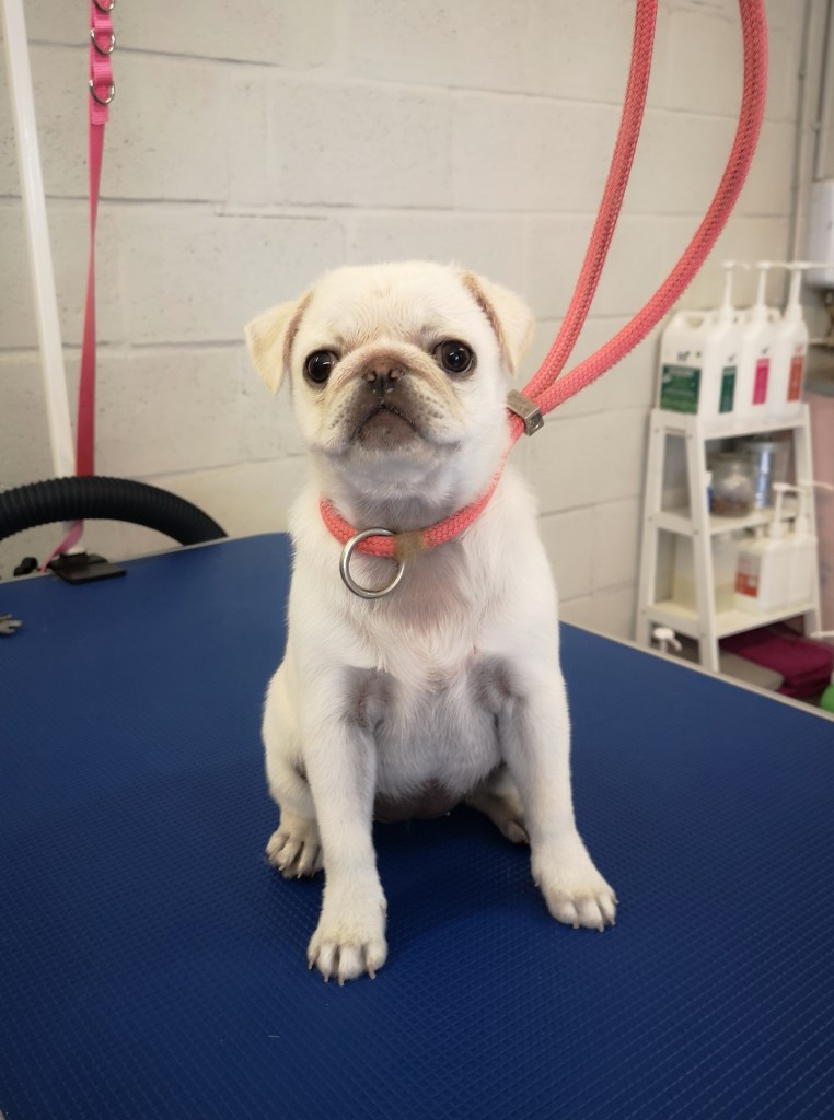 On the 21st of June 2020 we hosted our first Puppy Pamper Party which was a huge success. Our parties are aimed at puppies from the time they have their vaccinations up to 6 Months. The idea came as we have lots of puppies come for their first grooms and we want to make sure they enjoy coming to the salon for their grooming appointments. So we incorporate their first grooming session with lots of positive puppy play, we had four puppies attend our first party Luna the pug, Peach the Frenchie, Ralph the Cavapoo and Daisy the Yorkie all of whom were completely worn out by the end of the session.